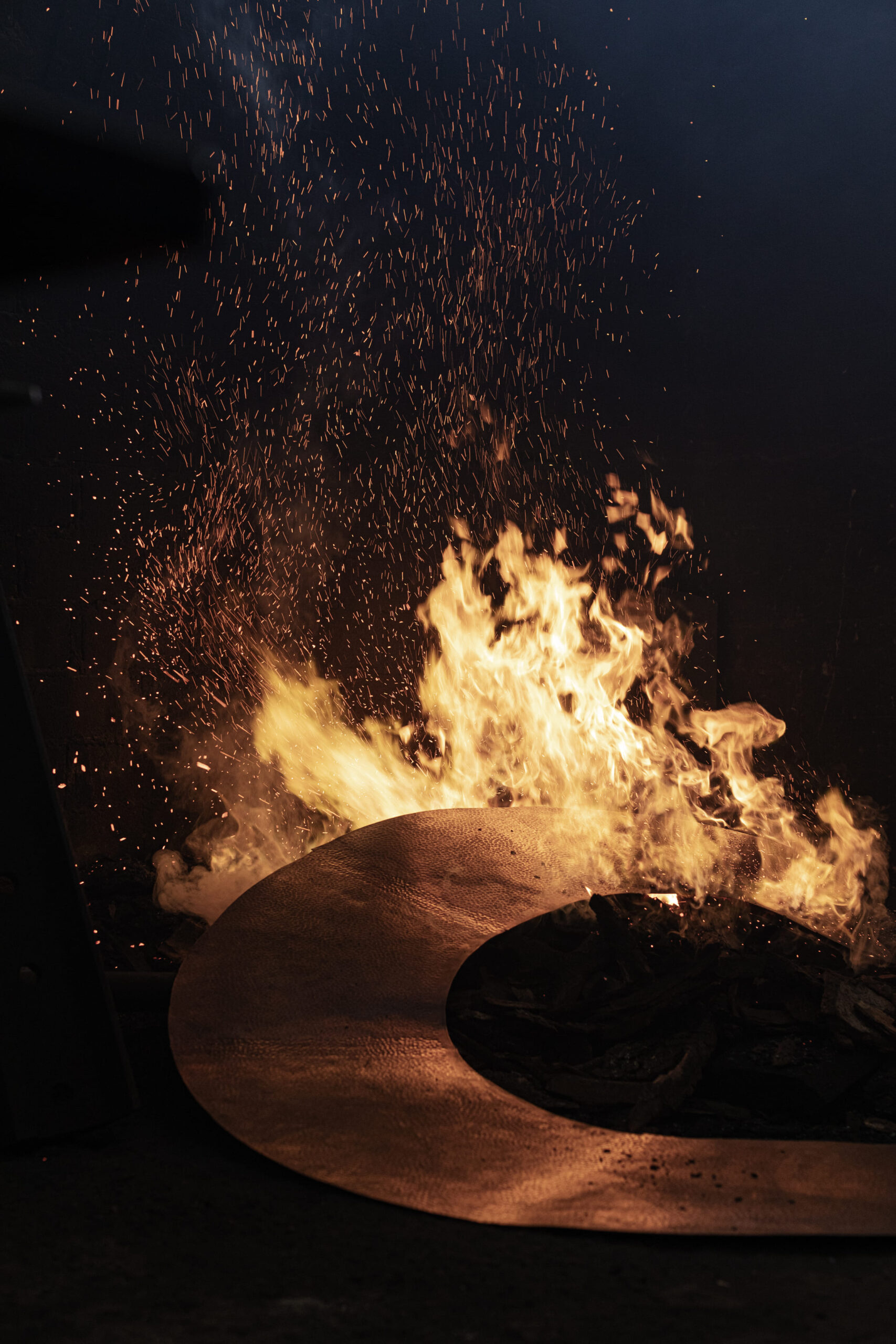 MANU IS INTERNATIONALLY ACCLAIMED FOR HIS MINIMALIST APPROACH PRIMARILY FOCUSED ON METALWORK. HIS DESIGNS, ESPECIALLY IN COPPER, BRASS, AND STEEL, DEMONSTRATE A PROFOUND RESPECT FOR THE INTEGRITY OF THE MATERIAL. THROUGH METICULOUS CRAFTSMANSHIP, MANU TRANSFORMS METAL SHEETS INTO FUNCTIONAL SCULPTURES, EMBRACING IMPERFECTIONS AND ALLOWING HIS PIECES TO GRACEFULLY EVOLVE OVER TIME. HIS WORK NOT ONLY EMBODIES FUNCTIONALITY BUT ALSO SERVES AS A TESTAMENT TO THE BEAUTY OF ARTISANAL PROCESSES, BLENDING TRADITION WITH CONTEMPORARY DESIGN.